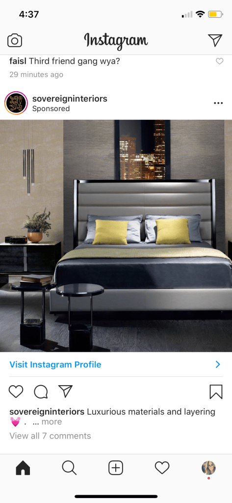 While writing this post, I saw an ad for furniture. 33 minutes before this ad, I had tweeted about receiving the keys to my new house and being excited to design my new bedroom.