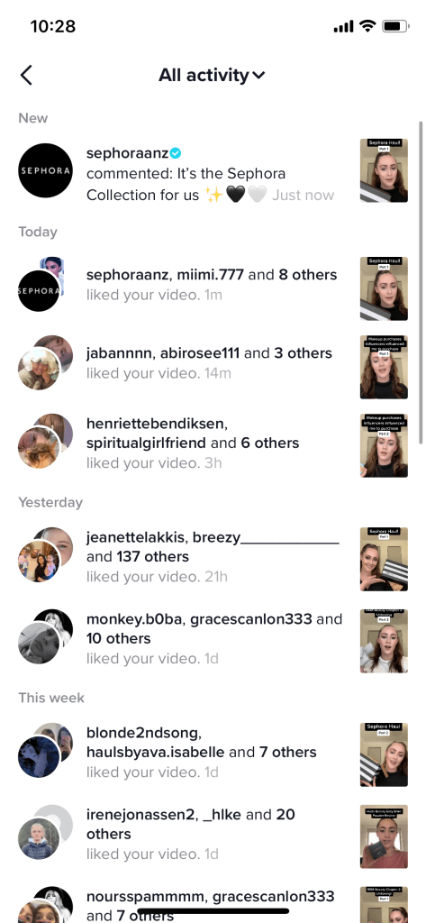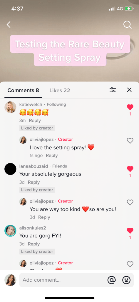 Another major success was having Sephora like and comment on a video and the chief marketing officer of Rare Beauty, Katie Welch also notice my account.
