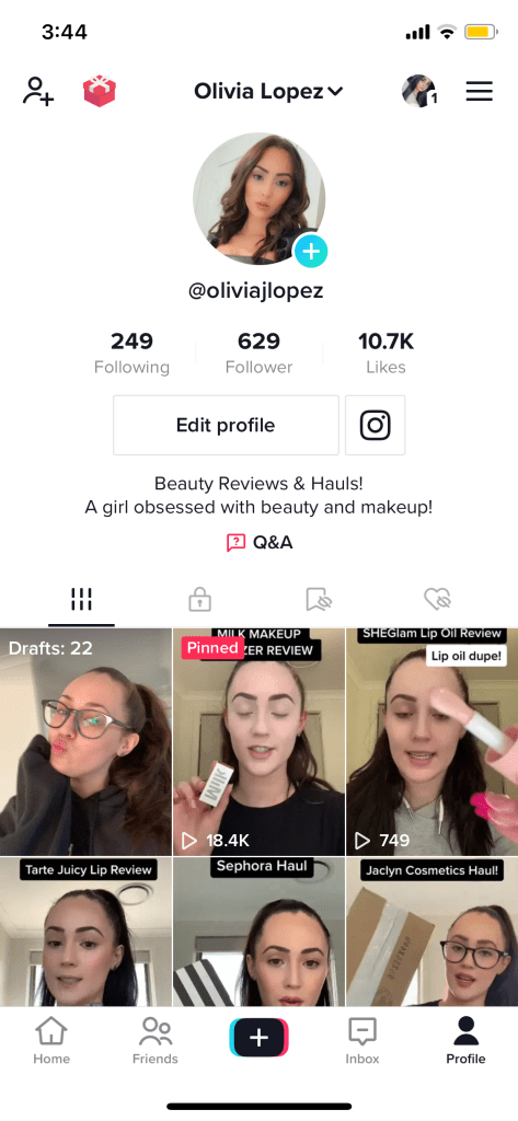 If you haven’t already and would like to follow along with my journey, you can follow along at @oliviajlopez on TikTok!